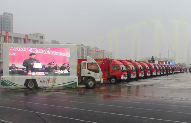 11月8日上午,一场消防演练在河南省消防总队训练基地拉开序幕。河南省公安消防支队出动30余辆消防车、3000多名消防官兵,上演了一场大型石油化工、高层公寓灭火综合演示演练。LED广告车严阵以待。
