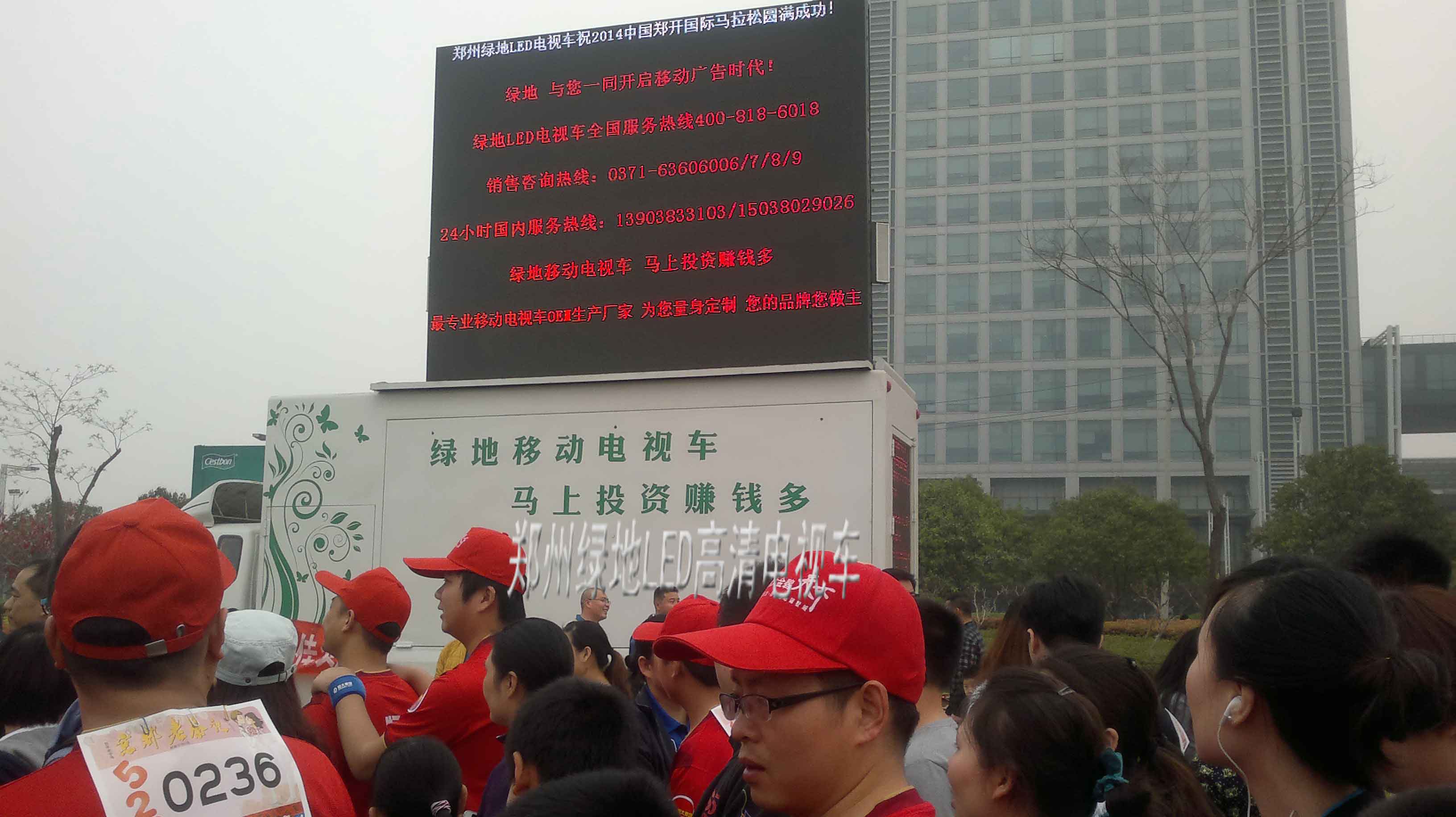 郑州绿地高清LED电视车助力2014郑开国际马拉松